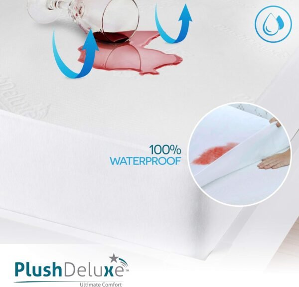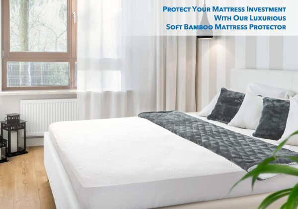 PlushDeluxe Premium Bamboo Mattress Protector – King Size, Waterproof & Ultra Soft Breathable Noiseless Washable Bed Mattress Cover For Comfort & Protector – White